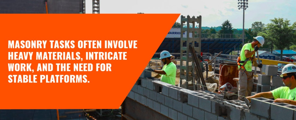 Masonry Industry: Masonry tasks often involve heavy materials, intricate work, and the need for stable platforms. It’s crucial to ensure that scaffolding is properly anchored and can support the weight of materials and workers. Masonry scaffolding is made up of many components; up-rights, out-rigors, cross-bases, and base plates but lack mudsills, planks, or railings. Often the addition of railings, planks, and mudsills leaves a gap for workers to complete tasks, creating a fall hazard.